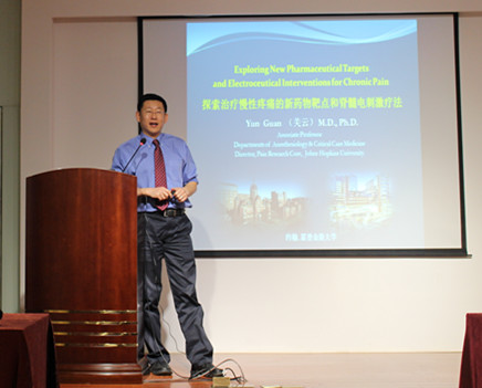 关云教授的报告题目为“探索治疗慢性疼痛的新药靶点和脊髓电刺激疗法”。首先,关教授简单介绍了临床神经疼痛的药物治疗和物理(电子疗法)治疗的优缺点和研发趋势。然后,关教授详细介绍了其科研团队在两种治疗方法上的最新研究进展。以MrgC/X1受体为靶点,其科研团队研发出BAM8-22与JHU58的镇痛候选药物,并在动物实验中探究脊髓和背根神经节中MrgC/X1受体参与镇痛作用的分子机理。脊髓电刺激是临床镇痛治疗的重用手段之一。关教授科研团队发现不同频率和强度的脊髓电刺激对神经损伤后机械敏化的机制不同;外周A神经纤维电刺激可以抑制外周伤害性C神经纤维传入的兴奋突触传递,脊髓CB1受体参与了神经网络之间的调控作用。关云教授主要从事神经病理性疼痛的基础研究与临床治疗开发, 其领导的科研团队主持美国NIH和公司横向课题多项。目前在研NIH RO1课题3项,NIH R21课题1项,相关学术成果多次发表在PNAS,J Neuroscience,Pain等高水平杂志。