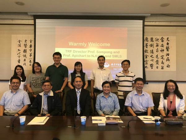 随后,沈旭经理介绍了医学与生命科学学院的建设和发展状况以及学院近日承办的“中泰科学家生命科学与药物发现”(2017年9月6日)学术研讨会的情况,Sompong教授感谢医学与生命科学学院的精心组织,称赞学院充满活力,并希望能有更多的泰国科学家与医学与生命科学学院的专家教授进行合作,共同申报中泰合作项目。