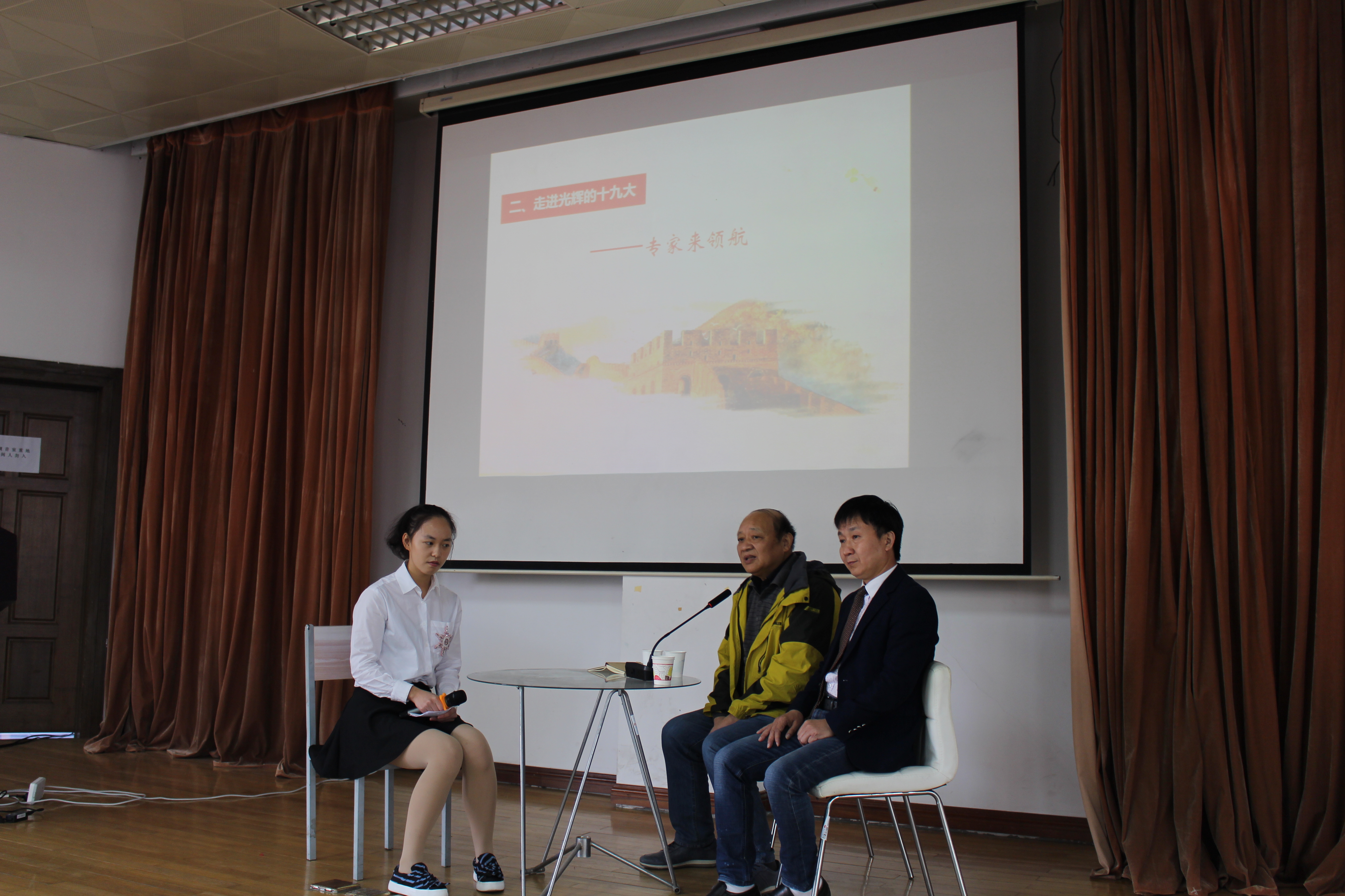 在观众提问环节,同学们就“党的十九大对青年人提出了怎样的要求”、“我国已经处于全面建设小康社会的决胜阶段,为什么接下来还是仍然长期处于社会主义初级阶段”、“当代老员工如何将十九大精神融入当下的学习生活中”等自身关心的问题向嘉宾们提问,两位专家耐心、细致地为同学们作了解答。活动在同学们热烈的掌声中圆满结束。