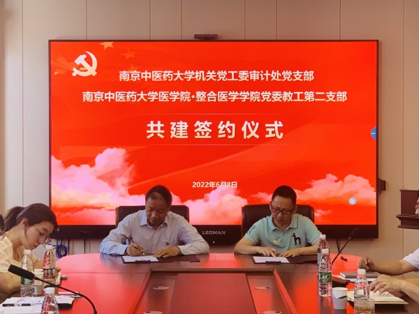为了深入推动党史学习教育常态化长效化,探索党建合作发展全新路径,6月8日下午,机关党工委审计处党支部与伟德国际victor1946•整合医学学院教工第二党支部举行共建签约仪式。机关党工委审计处党支部书记、审计处处长史为业,伟德国际victor1946•整合医学公司党委书记张军、学院教工第二党支部书记常加松及双方党员代表参加签约仪式。