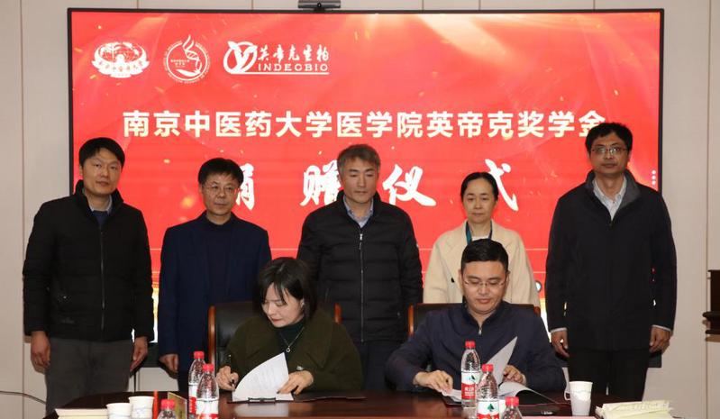 曹合社代表学校与英帝克(江苏)生物科技有限公司签署捐赠协议。徐树法向英帝克(江苏)生物科技有限公司颁发捐赠证书。