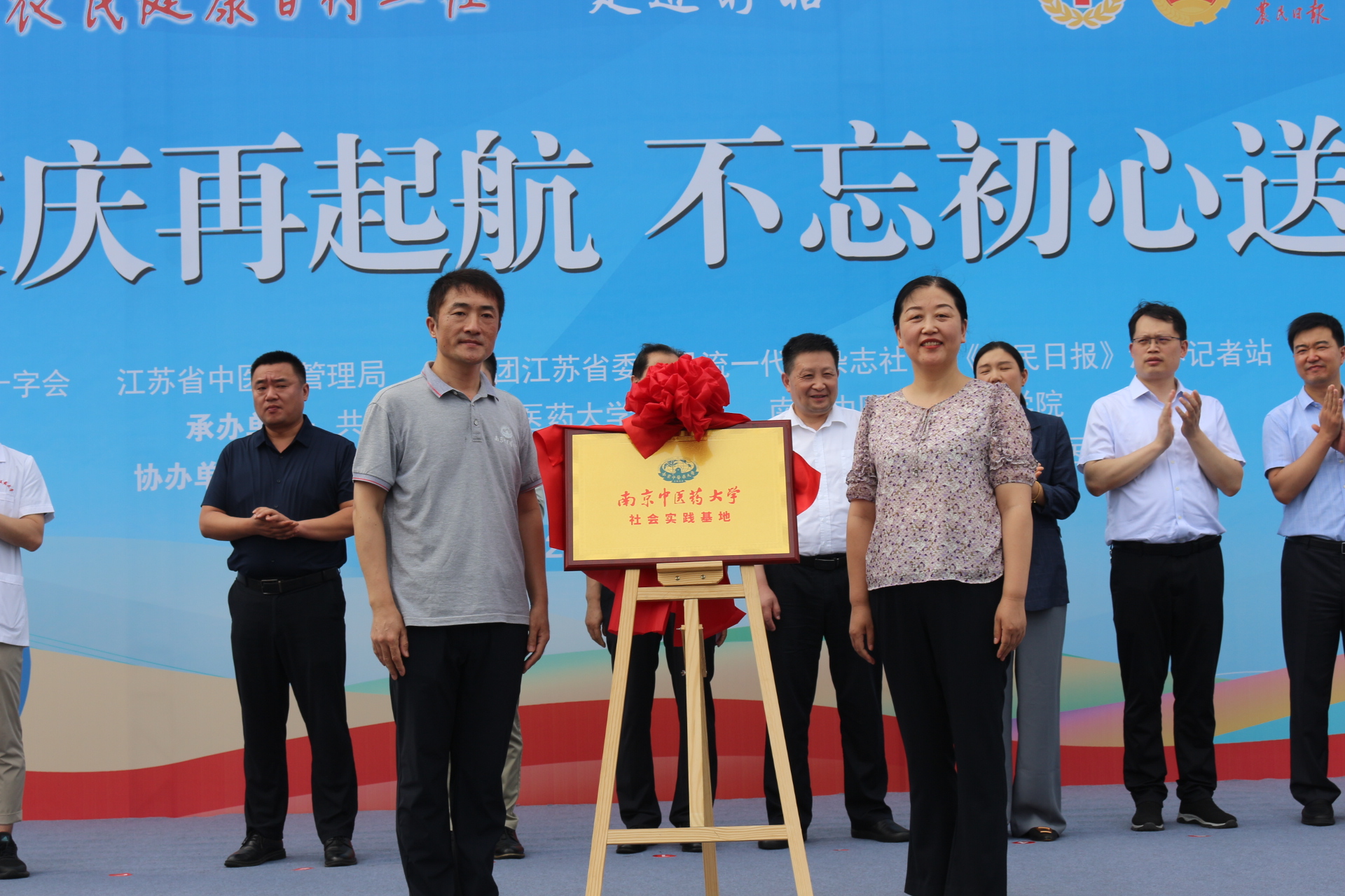 启动仪式上,校团委书记史文川与盱眙团县委书记骆梦琦签订了“双百”共建协议。医公司党委书记燕珂与盱眙县卫健委党组书记、主任张霞共同为“伟德国际1946亚洲版老员工社会实践基地”揭牌。