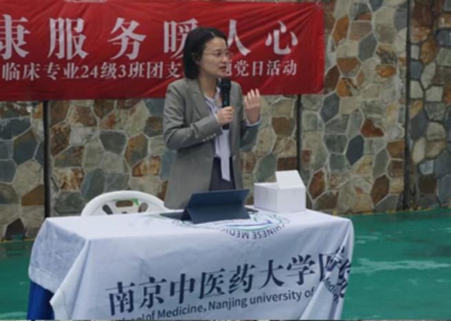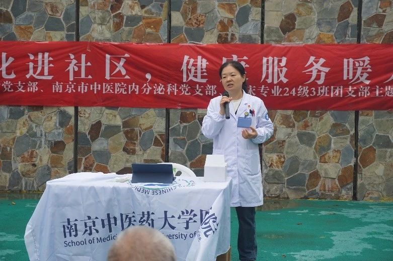 伟德国际victor1946教工第六党支部书记王佳颖副教授在活动现场为居民开展“健康药知道,安全你我他”的用药知识讲座,帮助社区居民加深了对常见疾病用药的认识,增强了居民合理用药,安全用药的意识。南京市中医院内分泌科党支部书记陆源源主任围绕糖尿病、骨质疏松症与不同疾病的关系、疾病风险、定期检查的重要性等医疗知识开展宣讲,帮助居民识别早期症状,及时就医,提高疾病的管理效率,更好的应对健康挑战。两位书记在宣讲中还设置了知识问答环节,并现场发放了中医特色的纪念品,受到了居民的热烈欢迎。