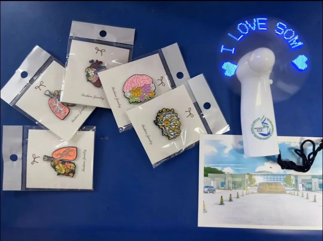 公司还为新生准备了贴心的欢迎礼,闪耀着院训的风扇为大家送上阵阵清凉,极具专业特色的可爱徽章戳中了00后的“萌点”,描绘着校园美景的卡通明信片则是绝好的校园打卡地图。
