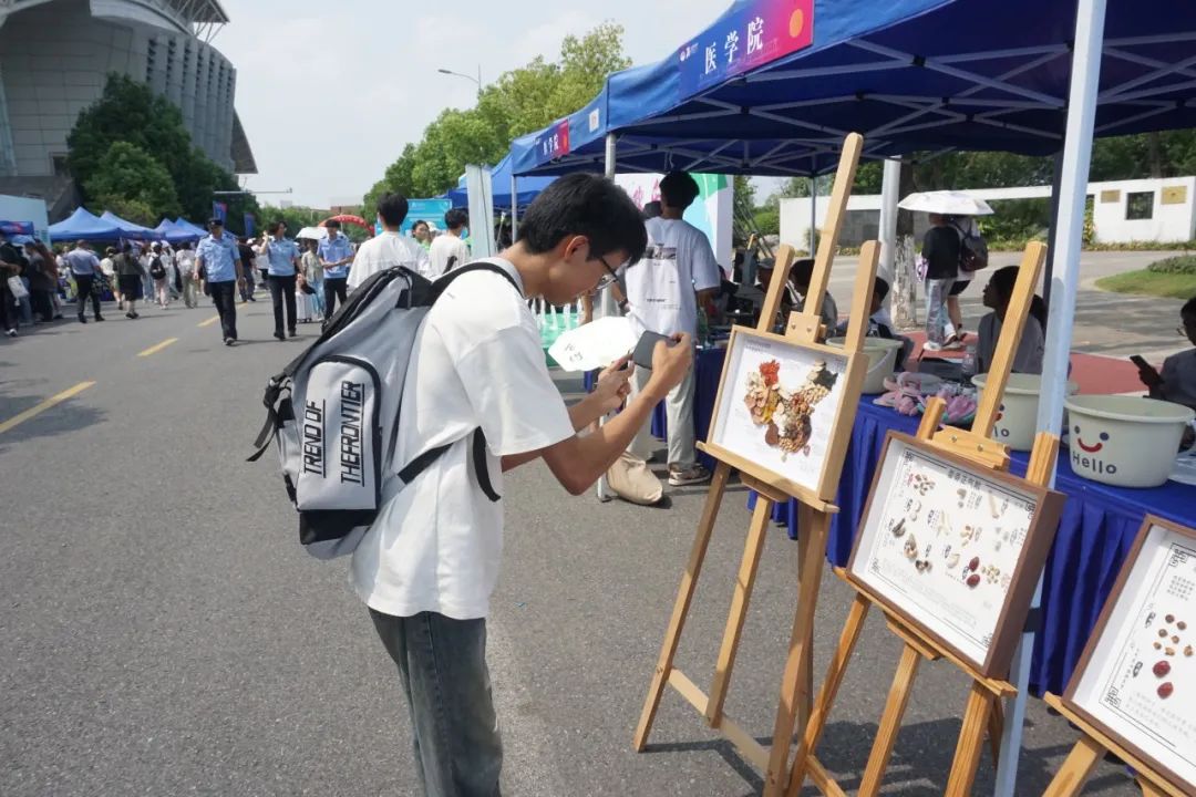 在外场,学院也准备了丰富多彩的互动体验活动,吸引了很多小杏仁和家人的积极参与。 中药标本展框和中药地图让大家了解了中医药的悠久传承和广泛影响。伟德国际victor1946特色科创产品——快乐卫士展现了中医药的创新发展。该产品将中药芳香疗法与玩偶“代糖效应”相结合,致力于为高压人群提供一种更易接受、更具幸福感的情绪调节方式。
