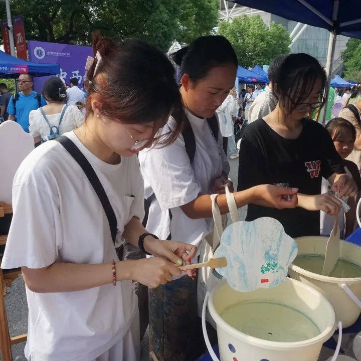 趣味漆扇制作活动吸引了大批师生和家长的积极参与,让大家感受到了中国传统文化的魅力。先使用印章在扇面上印染上灵芝、白芍、山楂、银杏等几味中药,而后以漆为笔、以水为画,一半人为、一半天成,各式各样、与众不同。小杏仁们纷纷亲自动手,创作了许多精美而有创意的作品。看,那一个个激动兴奋的笑脸,记录了多美好的时刻!