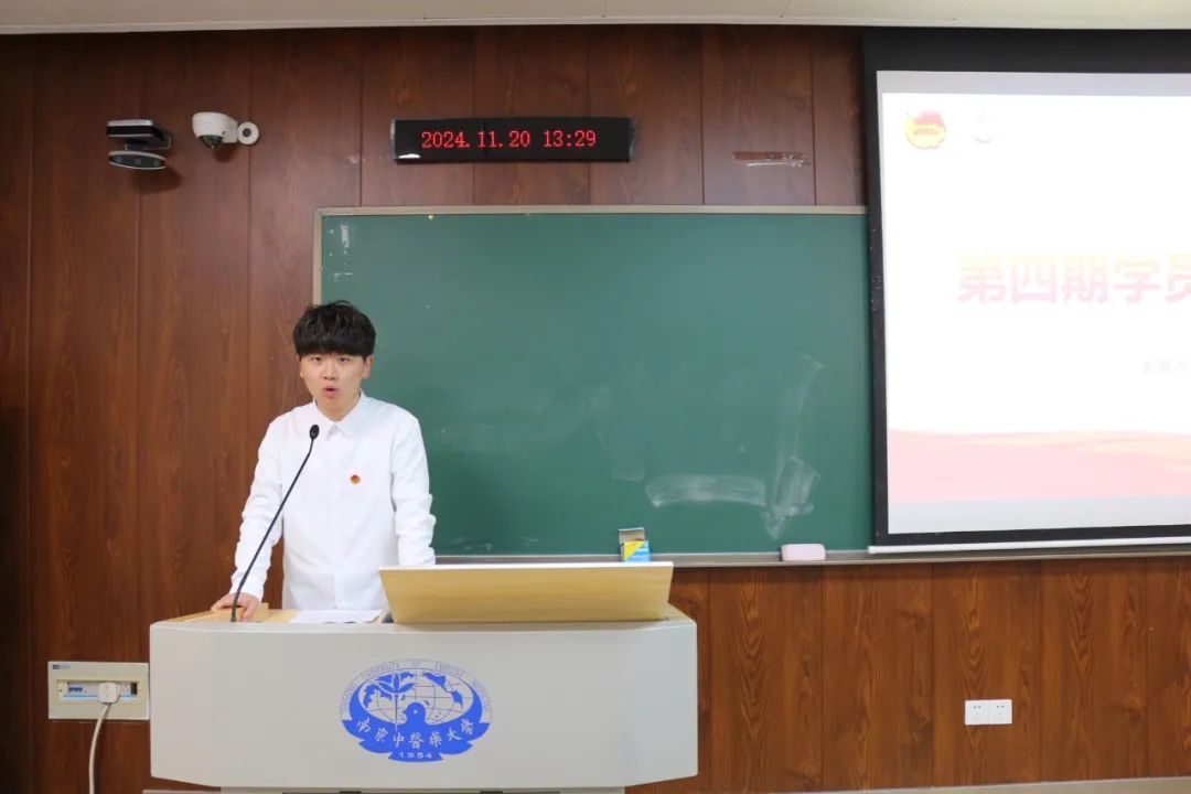 临床医学专业232班刘博涵作为“志行班”第四期优秀学员代表作学习成果汇报。他回顾了过去一年在“志行班”的学习收获与思想成长,分享了自己对时代青年责任担当的感悟与见解,引起了在场同学的强烈共鸣。