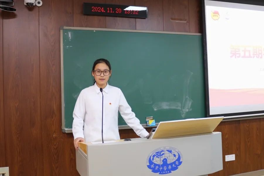 临床医学233班刘耀慧作为第五期员工代表上台发言。她结合“志行班”的宗旨发表了自己的开班感悟。她表示,将通过此次学习与实践加强对马克思主义的理解,努力成长为马克思主义的坚定信仰者、自觉传播者、忠诚实践者。