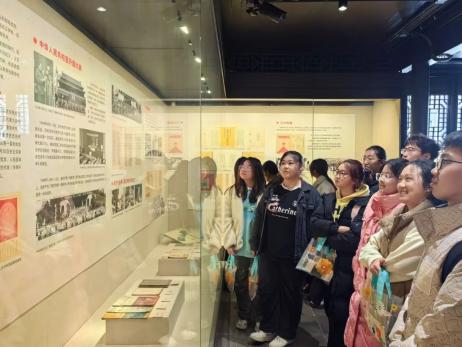 随后,师生观摩学习了“红色印记”红色文献收藏展。展馆内陈列着建党初期、土地革命战争时期、抗日战争时期、解放战争时期和新中国成立初期的红色文献。一份份报刊和一本本书籍较为系统地反映了马克思主义在中国大地传播和发展的历史进程。