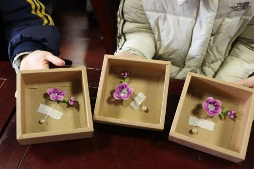 经过耐心细致的制作,一枚枚精美的绒花胸针诞生了。小巧独特的胸针不仅是同学们的劳动成果,还饱含了同学们对传统技艺的尊重与热爱,承载着大家坚定的文化自信。