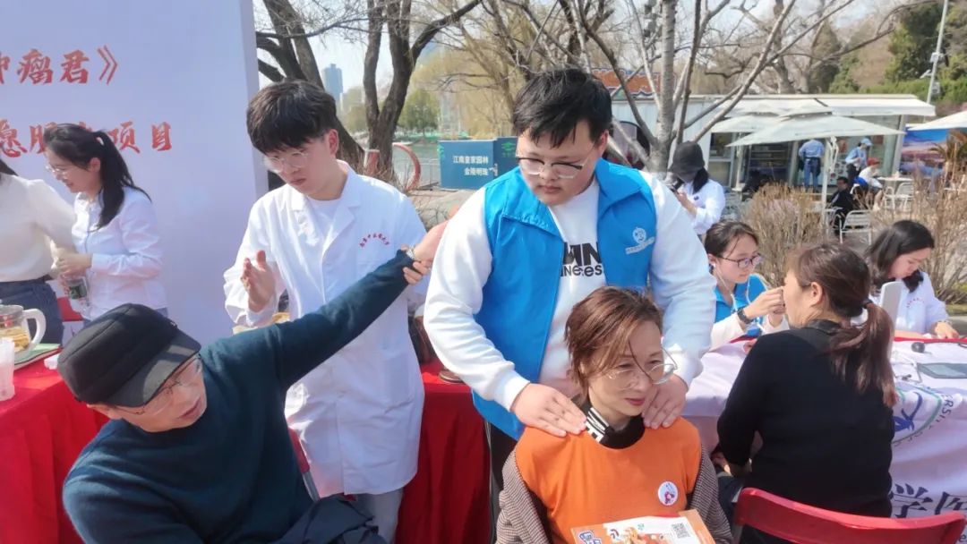 另有志愿者用娴熟的推拿手法,为居民们活血化瘀、缓解疲劳,并教授日常按摩手法。热情的阳光下,豆大的汗珠折射出志愿精神和劳动精神的光辉,引得体验服务的群众交口称赞,纷纷递上纸巾为志愿者擦拭汗水。