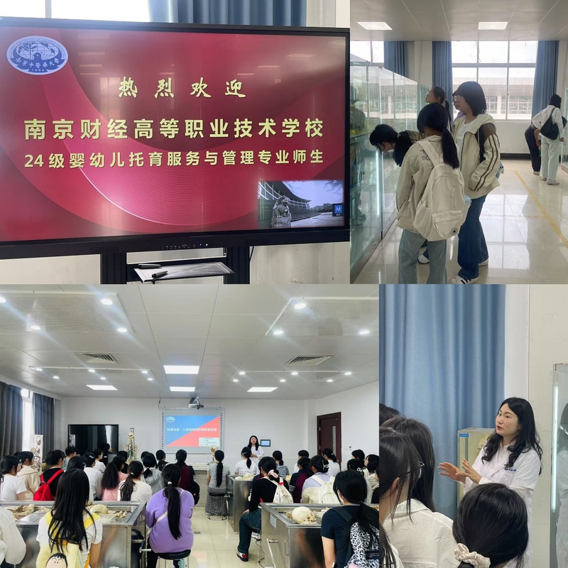 下午14时30分,伟德国际victor1946教工第二党支部全体老师在仙林校区B8-501人体解剖标本陈列馆以边走边看边学边讨论的形式,向研学交流的婴幼儿托育服务与管理专业员工介绍了人体结构、骨骼的结构,以及骨骼在人体中的作用。支部史婷婷老师以《托举生命:人体结构与托育科学初探》为题开展了现场教学,重点围绕人体骨骼与肌肉结构展开系统讲解,重点对比婴幼儿与成年人的骨骼差异,引导研学员工深入理解婴幼儿的生理特征与护理要点。现场教学结束后,支部老师带领员工分组操作骨骼、肌肉及九大系统模型,让他们零距离接触真实标本,提升解剖知识的认知深度。