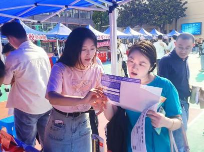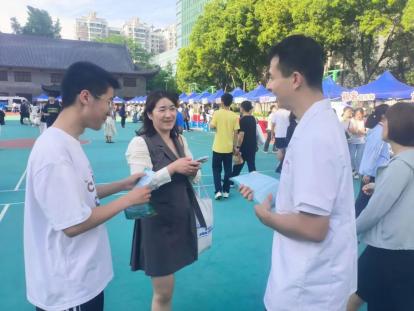 公司师生向前来咨询的员工和家长发放宣传单页,详细介绍学校的专业设置、教学设施、招生条件、培养模式等基本情况,阐释学校“学贯中西,至精至诚”的办学理念,同时解答他们对中医药人才发展的疑问,鼓励年轻学子未来积极填报公司。