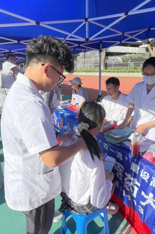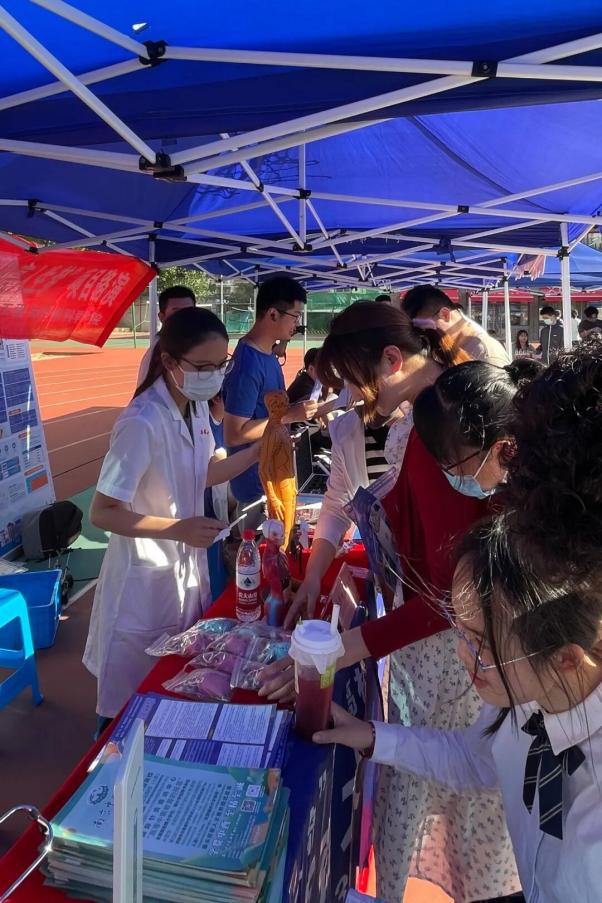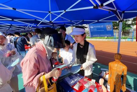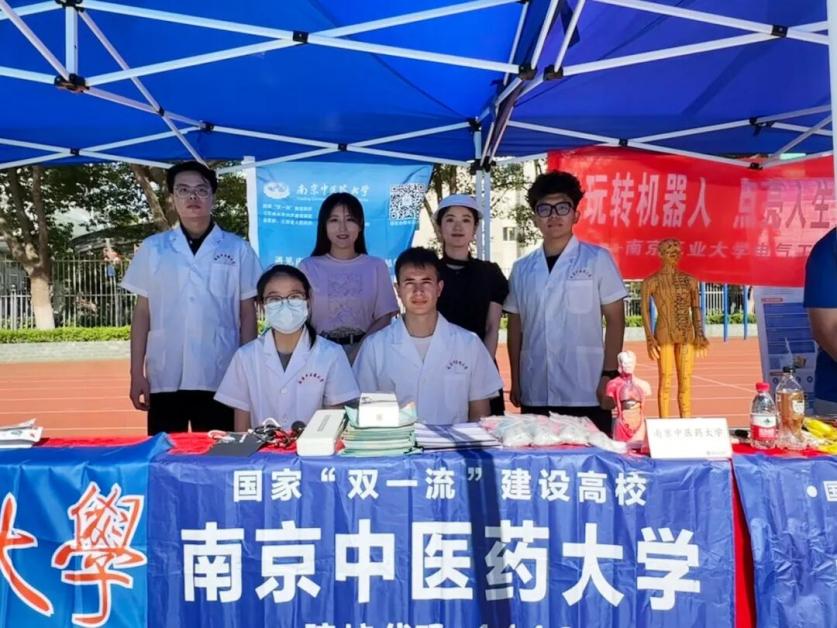 当天,咨询会现场人流如织,来自南京各地的初中、高中员工和家长怀揣着梦想和希望汇聚于此。公司师生用心准备了针灸穴位模型、人体解剖模型、中药香囊等展品以彰显学校医药特色,并现场提供量血压和推拿等医疗健康体验服务,吸引了一批批员工和家长来观摩体验。