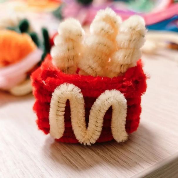 活动伊始,社区内便被五彩的毛线、灵巧的钩针、柔软的扭扭棒和同学们洋溢的笑容点亮。在舒缓的音乐中,同学们在手工达人的耐心指导下,从零开始学习钩织技巧,从最初的生疏逐渐变得熟练,专注的神情在脸上绽放。一针一线,仿佛将外界的喧嚣都隔绝开来,沉浸在手工的乐趣之中。掌握基本技巧后,同学们更是灵感迸发,开始了自由创作,钩针与毛线在指尖翩翩起舞,扭扭棒也变幻出各种造型,展现着同学们无限的创造力。